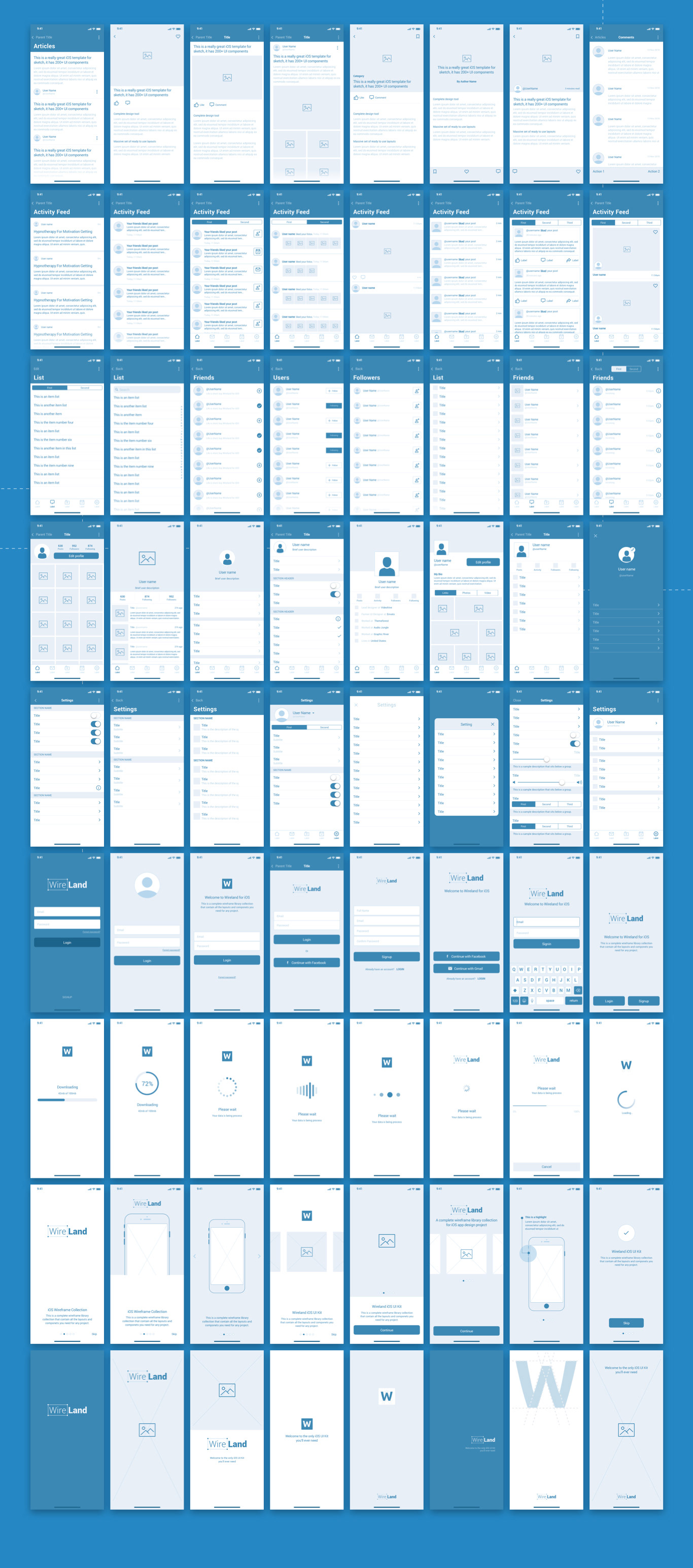 Wireland Ios Wireframe Kit Complete Ios Ui Kit Collection For Sketch By Yoyo Labs