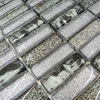 Total Look Design Tiles And Interiors Grey Black Glass Glitter Mosaic Tiles Sheet For Walls Floors Bathrooms Kitchen Sample Approx 6cm X 6cm Amazon In Home Kitchen